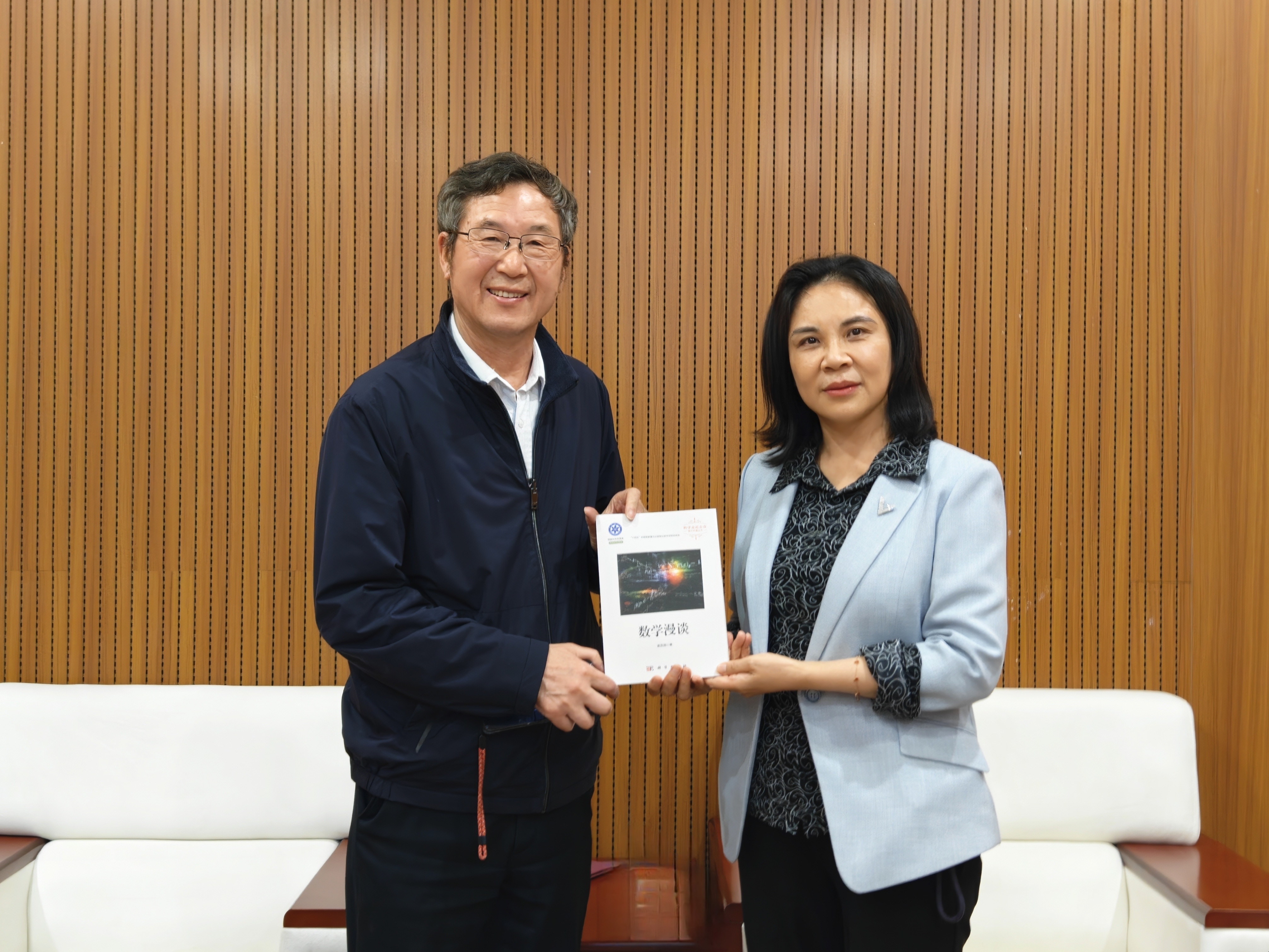 嘉锡讲坛”荣誉证书,袁亚湘院士向吴明红院士赠送了个人科普著作《数学漫谈》。副校长卢孝强、爱情岛